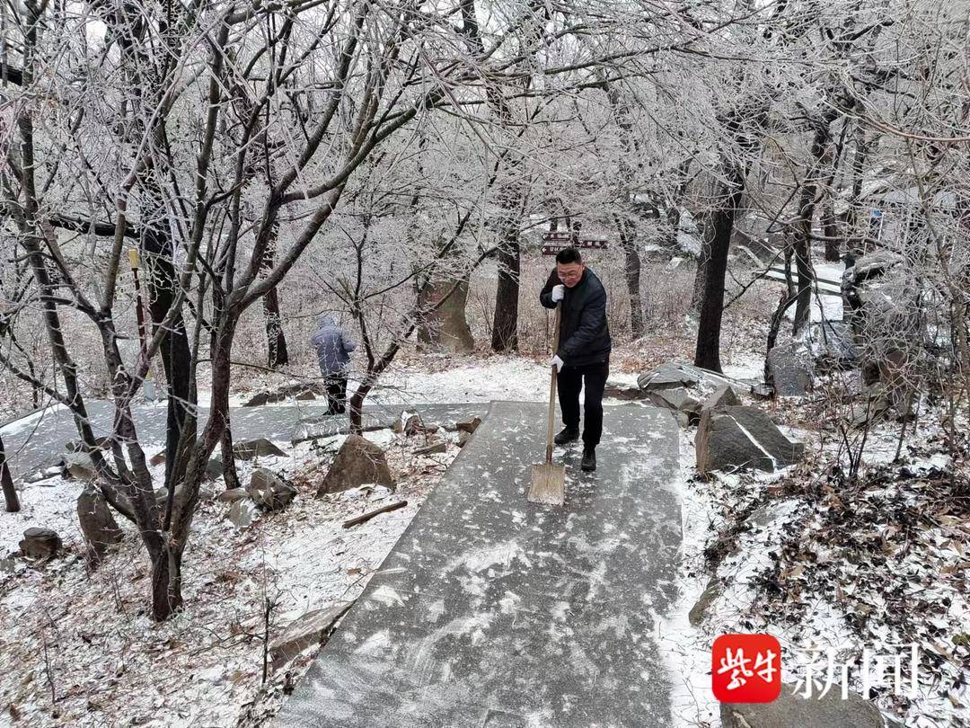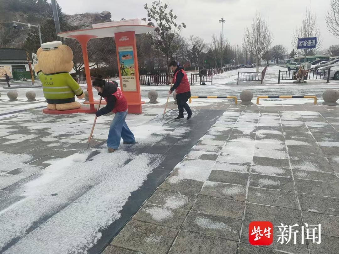 亚博体育 雪落港城映初心 文旅东说念主扫雪除冰护祯祥