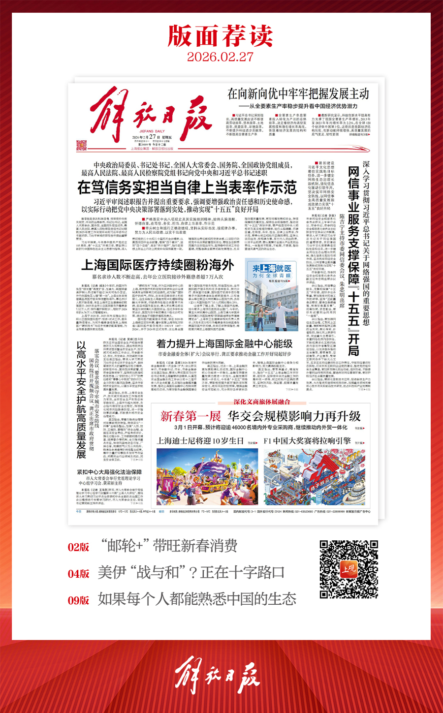 早上好!上不雅新闻『早读』来啦!2026年2月27日 星期五 农历正月十一