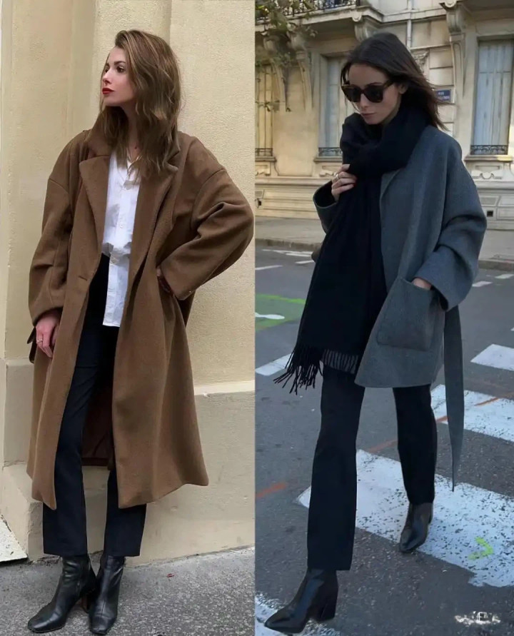 Point① 大衣+牛仔直筒裤+短靴,经典永不外时