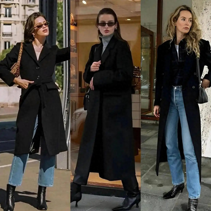 大衣长度选到膝盖隔壁或者再往下小数,上半身隐秘面积够大,底下知晓来的裤腿只占小腿那一截,牛仔裤的日常调性和大衣的考究调性在这个瑕瑜分派下搭配得很当然,是真确穿十年王人不外时的组合。