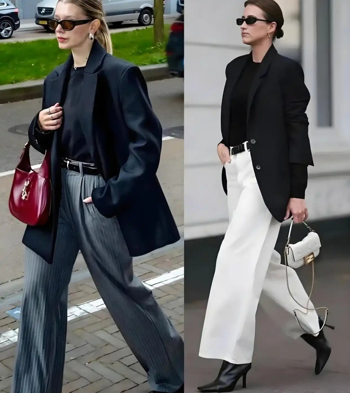 高腰盘算推算把腰线位置提上去了,搭配阔腿裤自己的垂坠裤型,腿看起来会比本质要长,再配上三到五厘米粗跟的踝靴,个子不高的东谈主穿这一套也能穿出可以的形体比例。