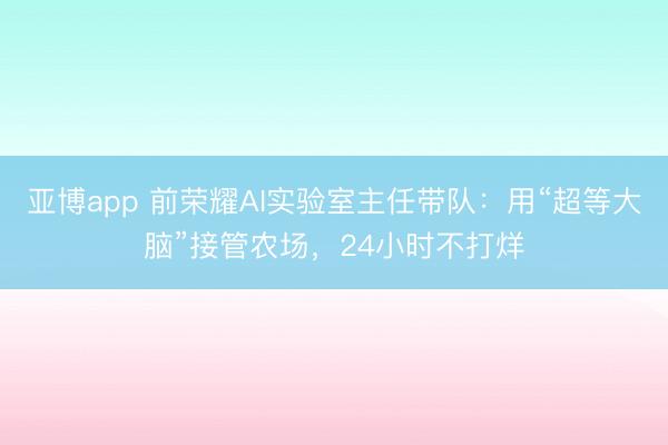 亚博app 前荣耀AI实验室主任带队:用“超等大脑”接管农场,24小时不打烊