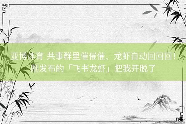 亚博体育 共事群里催催催,龙虾自动回回回!刚发布的「飞书龙虾」把我开脱了