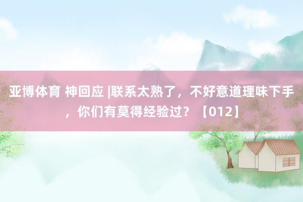 亚博体育 神回应 |联系太熟了,不好意道理味下手,你们有莫得经验过?【012】