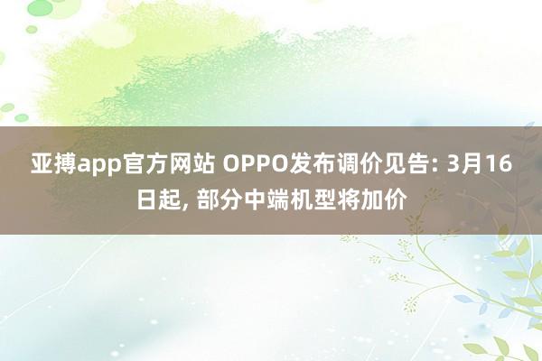 亚搏app官方网站 OPPO发布调价见告: 3月16日起, 部分中端机型将加价