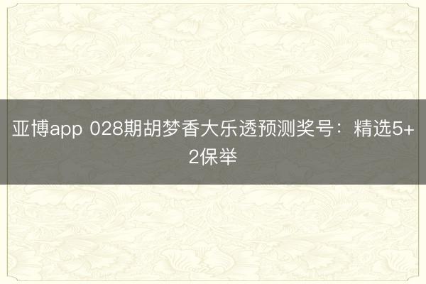亚博app 028期胡梦香大乐透预测奖号:精选5+2保举