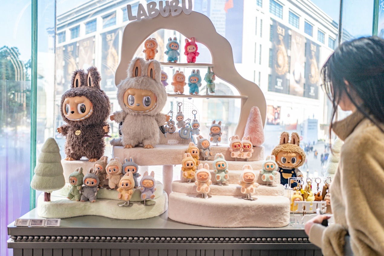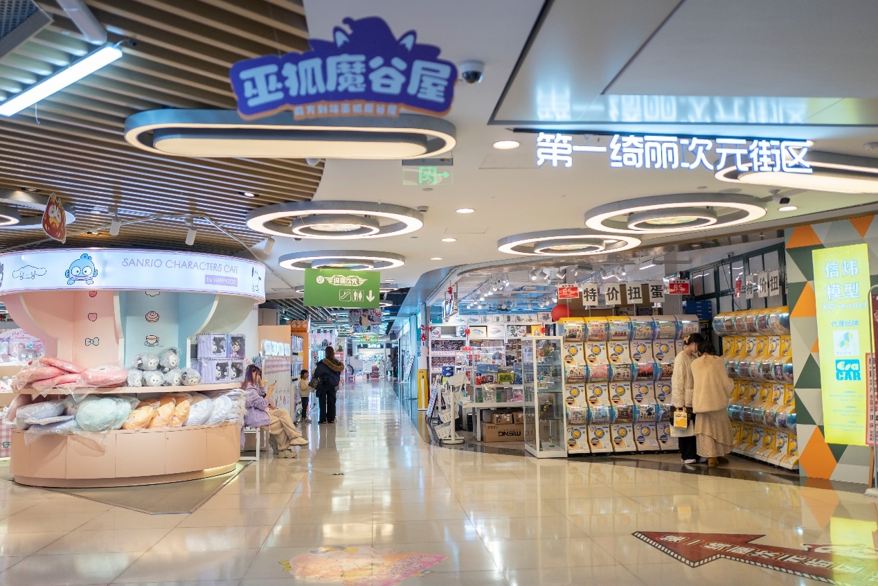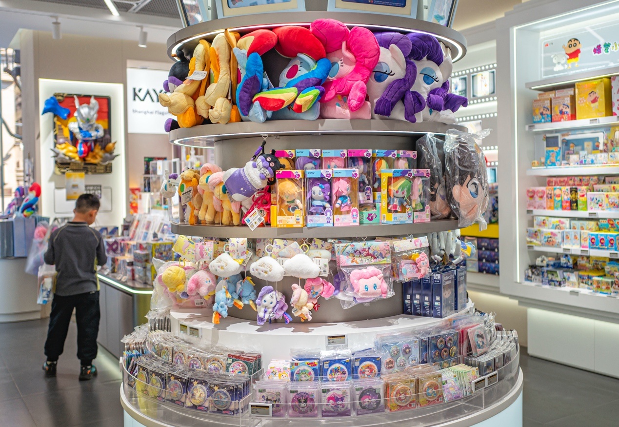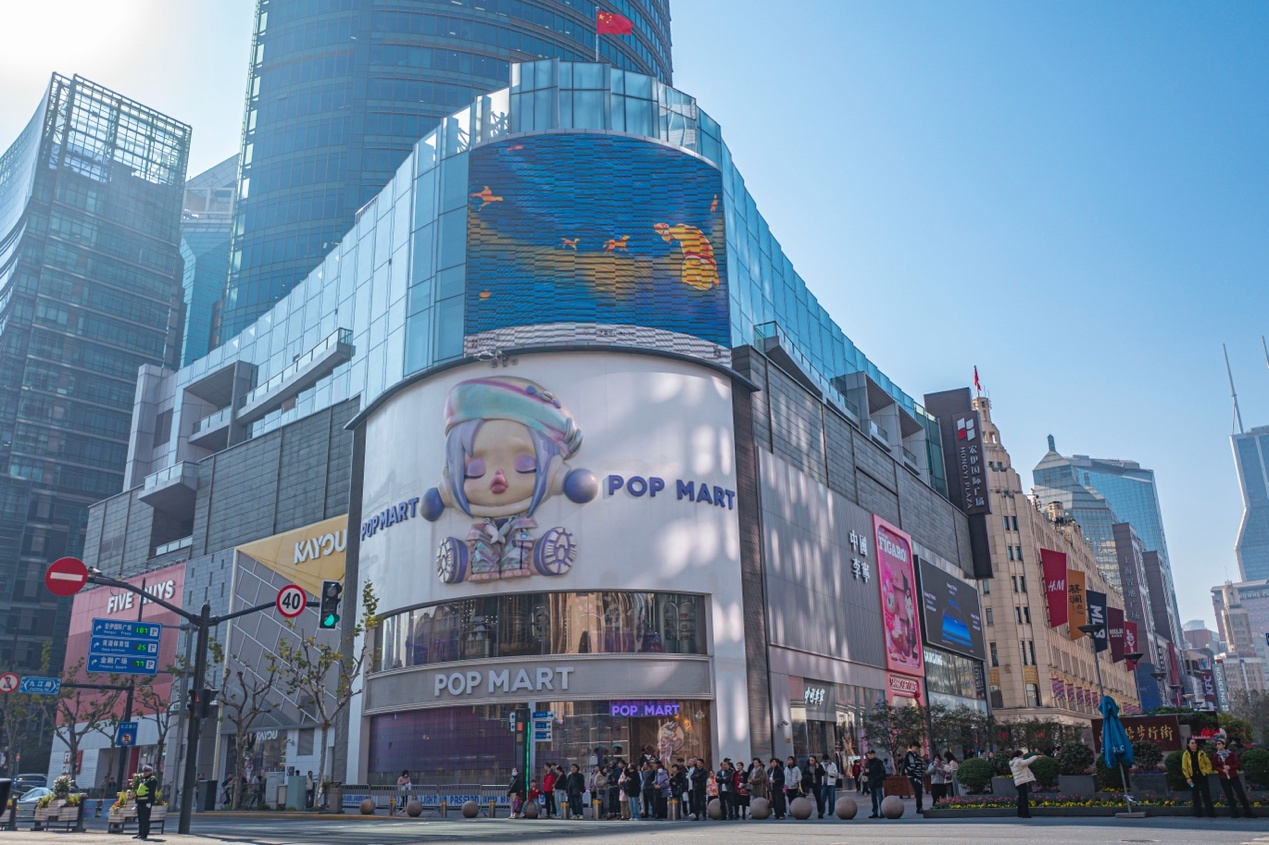 汇聚了泡泡玛特人人旗舰店、三丽鸥上海宏伊国际广场店、卡游城市旗舰店三大潮玩巨头。