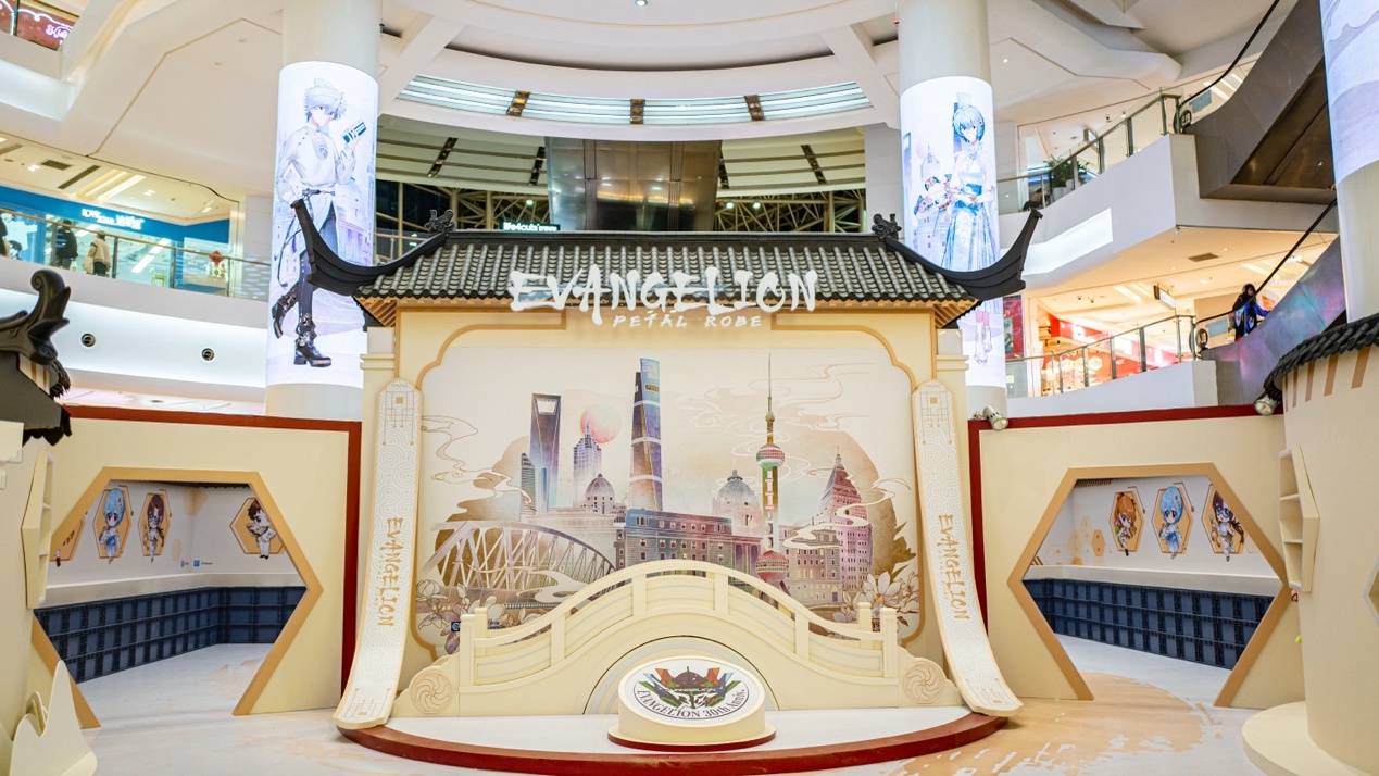 南座1-4F常办热点 IP 快闪。EVANGELION落花盈裳新考中主题快闪正在南座3F中庭举办。