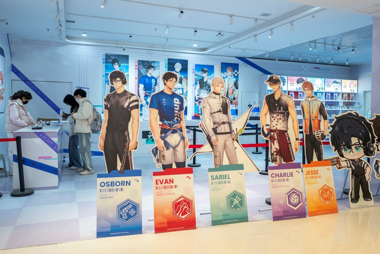 “光与夜之恋x奥林匹克文化长卷”光跃开赴主题快闪行为正在北座1F举办,主题店售卖徽章、文献夹、挂件、立牌等左近。
