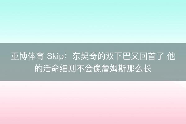 亚博体育 Skip:东契奇的双下巴又回首了 他的活命细则不会像詹姆斯那么长