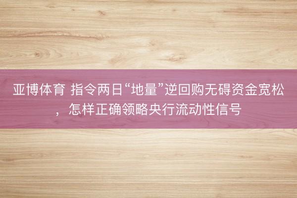 亚博体育 指令两日“地量”逆回购无碍资金宽松,怎样正确领略央行流动性信号