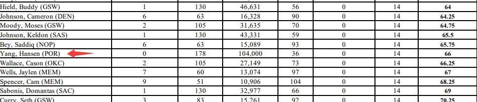 也正因为媒体和球员票皆是零,杨瀚森的最终加权得分定格在了66分,这个分数和顶级球星比差距很大,排行也处在中游偏后的位置,前一位是鹈鹕的萨迪克·贝,后一位是雷霆的卡森·华莱士。其实这效果也能合伙,毕竟全明星的投票端正便是为了均衡球迷东谈主气和专科招供度,球迷看的是心扉和期待,但球员和媒体更敬重赛场阐述和定约影响力,杨瀚森现时在NBA的处境,如实还没到能打动这些专科群体的过程。