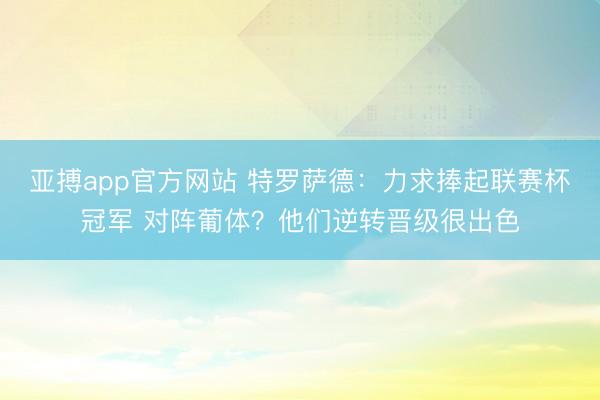亚搏app官方网站 特罗萨德:力求捧起联赛杯冠军 对阵葡体?他们逆转晋级很出色