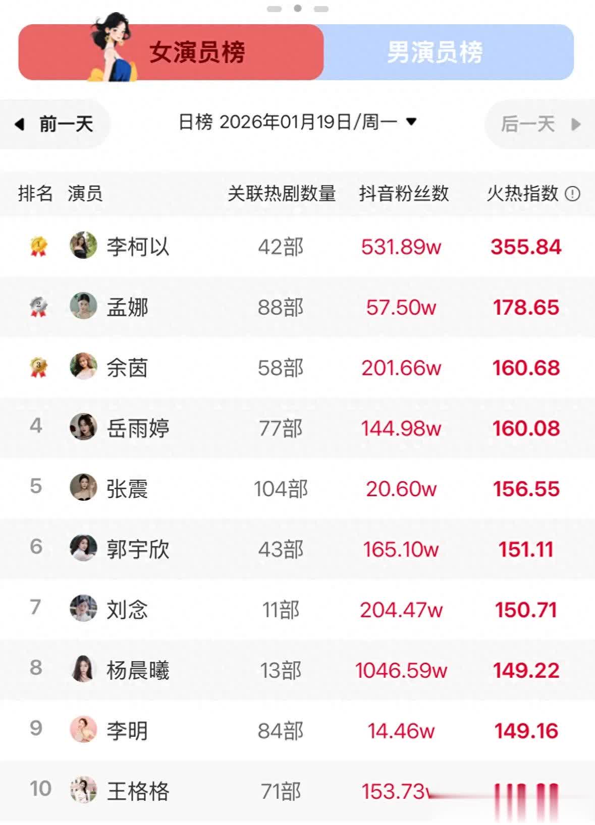 短剧演员的更新换代堪比翻书速率还快,尤其是女演员的竞争更是日趋热烈。最近短剧女演员热度榜再次迎来了更新,韩雨彤、王小亿等老牌演员纷繁掉榜,全被短剧新东谈主所取代。