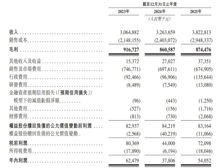 财务弘扬方面,公司呈现营收捏续增长、利润波动调治的态势。2023年至2025年,公司营收分歧达30.65亿元、32.64亿元、38.23亿元,三年营收稳步攀升。但同期净利润出现波动,分歧为6247.9万元、3780.6万元、5405.2万元,波动主要源于权柄股份赎回欠债公允价值变动的影响。