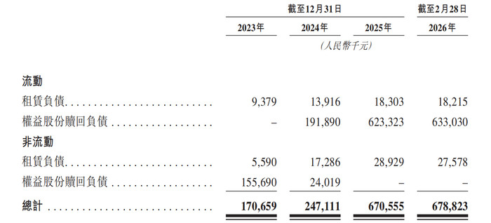 值得关心的是,公司钞票欠债端靠近较大压力。2023年至2024年,公司钞票净值从1.76亿元增至2.16亿元;2025年受新增3.96亿元权柄股份赎回欠债影响,钞票净值大幅缩水至1699.3万元,同比减少92.1%。流动性方面,2025年末,公司流动欠债净额达1.345亿元,主要原因是权柄股份赎回欠债、贸易搪塞款项大幅加多。规章2026年2月末,公司债务总额达6.79亿元,其中权柄股份赎回欠债占比超九成,达6.33亿元。