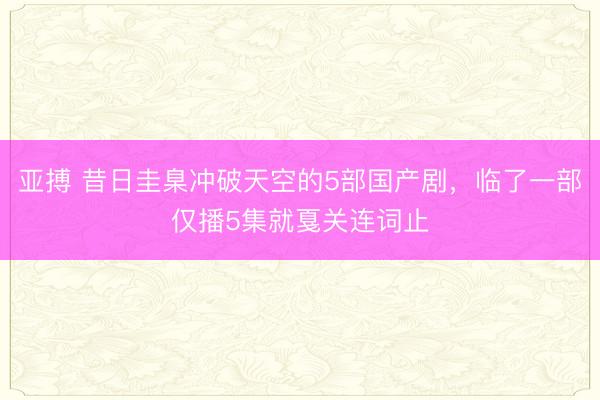 亚搏 昔日圭臬冲破天空的5部国产剧,临了一部仅播5集就戛关连词止