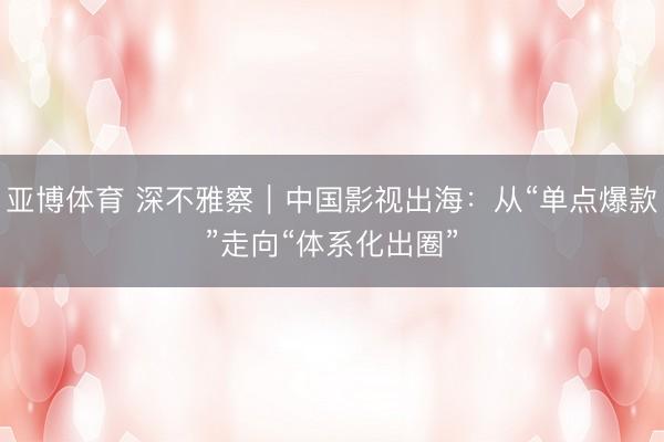 亚博体育 深不雅察|中国影视出海:从“单点爆款”走向“体系化出圈”