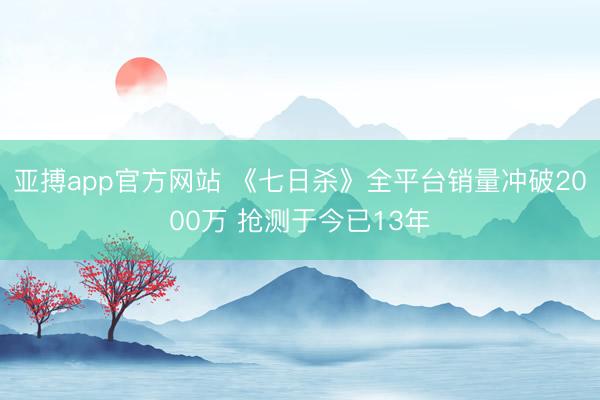 亚搏app官方网站 《七日杀》全平台销量冲破2000万 抢测于今已13年