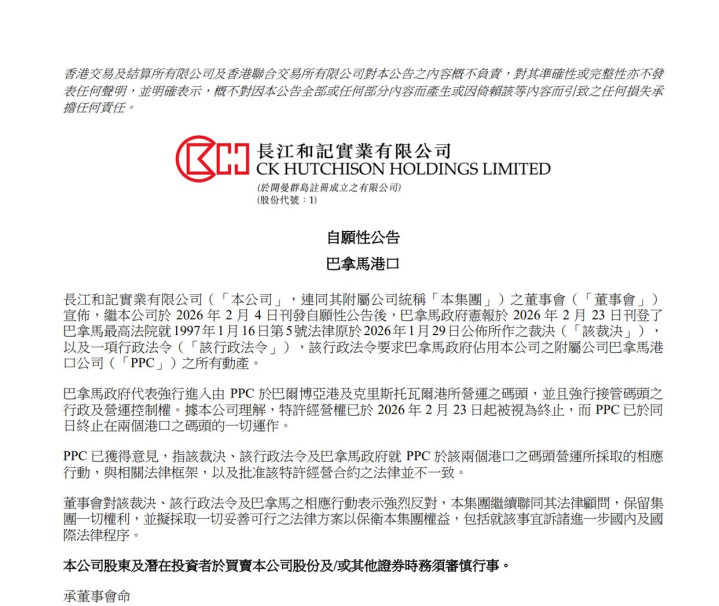 在1月19日,巴拿马最高法院崇敬公布判决效果,长和系旗下负责运营的巴尔博亚港和克里斯托巴尔港,特准谋划合同被认定“违宪”,径直宣告无效。