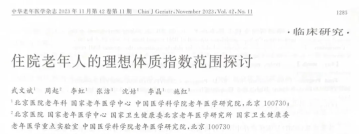 [1] 武文斌,周起,李虹等.入院老年东说念主的理思体质指数范畴沟通[J].中华老年医学杂志,2023,42(11):1285-1290.DOI:10.3760/cma.j.issn.0254-9026.2023.11.003.