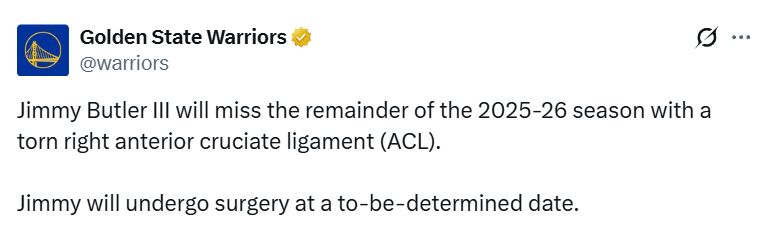 亚博体育 豪杰官宣巴特勒赛季报销! 本东谈主晒将军照玩梗 不忘祝贺库里入选全明星