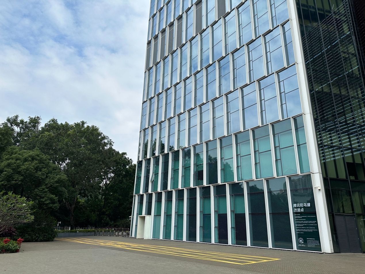 腾讯滨海大厦防鸟撞改良点实景图。