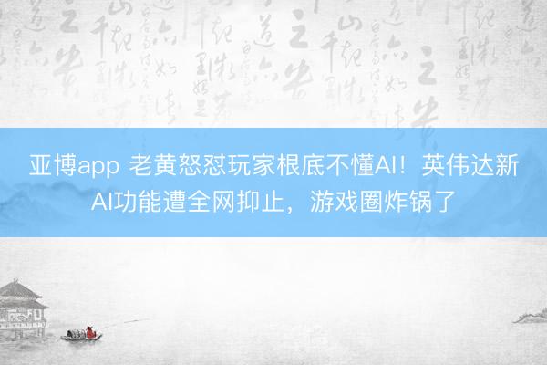 亚博app 老黄怒怼玩家根底不懂AI!英伟达新AI功能遭全网抑止,游戏圈炸锅了