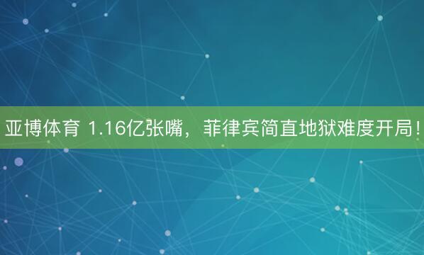 亚博体育 1.16亿张嘴,菲律宾简直地狱难度开局!